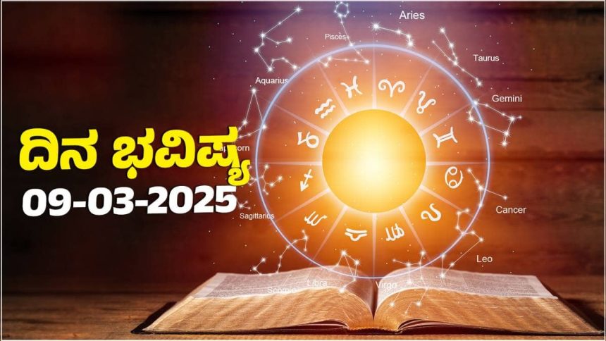 ಇಂದು 9 ಮಾರ್ಚ್ 2025 ಭಾನುವಾರ, ಫಾಲ್ಗುಣ ಮಾಸ, ಶುಕ್ಲ ಪಕ್ಷ, ಚತುರ್ದಶಿ. ಬೆಳಗ್ಗೆ 09:34 ರಿಂದ 11:03 ವರೆಗೆ ರಾಹುಕಾಲವಿರುತ್ತದೆ. ಮೇಷ ರಾಶಿಯವರಿಗೆ ದಿನ ಚೆನ್ನಾಗಿದೆ. ಸ್ನೇಹಿತರೊಂದಿಗೆ ಪ್ರವಾಸ ಹೋಗಲಿದ್ದೀರಿ, ಮೀನ ರಾಶಿಯವರ ಆದಾಯದ ಮೂಲಗಳು ಹೆಚ್ಚಾಗುತ್ತದೆ. ಉಳಿದ ರಾಶಿಯವರಿಗೆ ಇಂದು ದಿನ ಹೇಗಿದೆ? ಮೇಷದಿಂದ ಮೀನ ರಾಶಿಯವರ ದಿನಭವಿಷ್ಯ ಹೀಗಿದೆ.