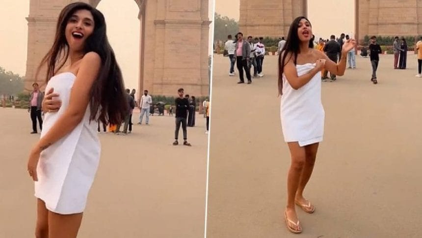 ವೈರಲ್ ಆಗಿರುವ ವಿಡಿಯೋದಲ್ಲಿ, ಇಂಡಿಯಾ ಗೇಟ್ ಮುಂದೆ ಓರ್ವ ಮಾಡೆಲ್ ಟವೆಲ್ ಸುತ್ತಿ ಡ್ಯಾನ್ಸ್ ಮಾಡುತ್ತಿದ್ದಾರೆ. ‘ದಿಲ್ವಾಲೆ ದುಲ್ಹನಿಯಾ ಲೇ ಜಾಯೇಂಗೆ’ ಚಿತ್ರದ ಹಾಡಿಗೆ ಆಕೆ ನೃತ್ಯ ಮಾಡುತ್ತಿದ್ದಾರೆ. ಈ ಸಿನಿಮಾ ಹಾಡಿನಲ್ಲಿ ಕಾಜೋಲ್ ಟವೆಲ್ ಹಾಕಿಕೊಂಡು ಹೇಗೆ ಡ್ಯಾನ್ಸ್ ಮಾಡಿದ್ದರೋ ಅದೇ ರೀತಿ ಇದೀಗ ಮಾಡೆಲ್ ಇಂಡಿಯಾ ಗೇಟ್ ಮುಂದೆ ಈ ಹಾಡಿಗೆ ಡ್ಯಾನ್ಸ್ ಮಾಡಿದ್ದು ಎಲ್ಲರಿಗೂ ಅಚ್ಚರಿ ಮೂಡಿಸಿದೆ.